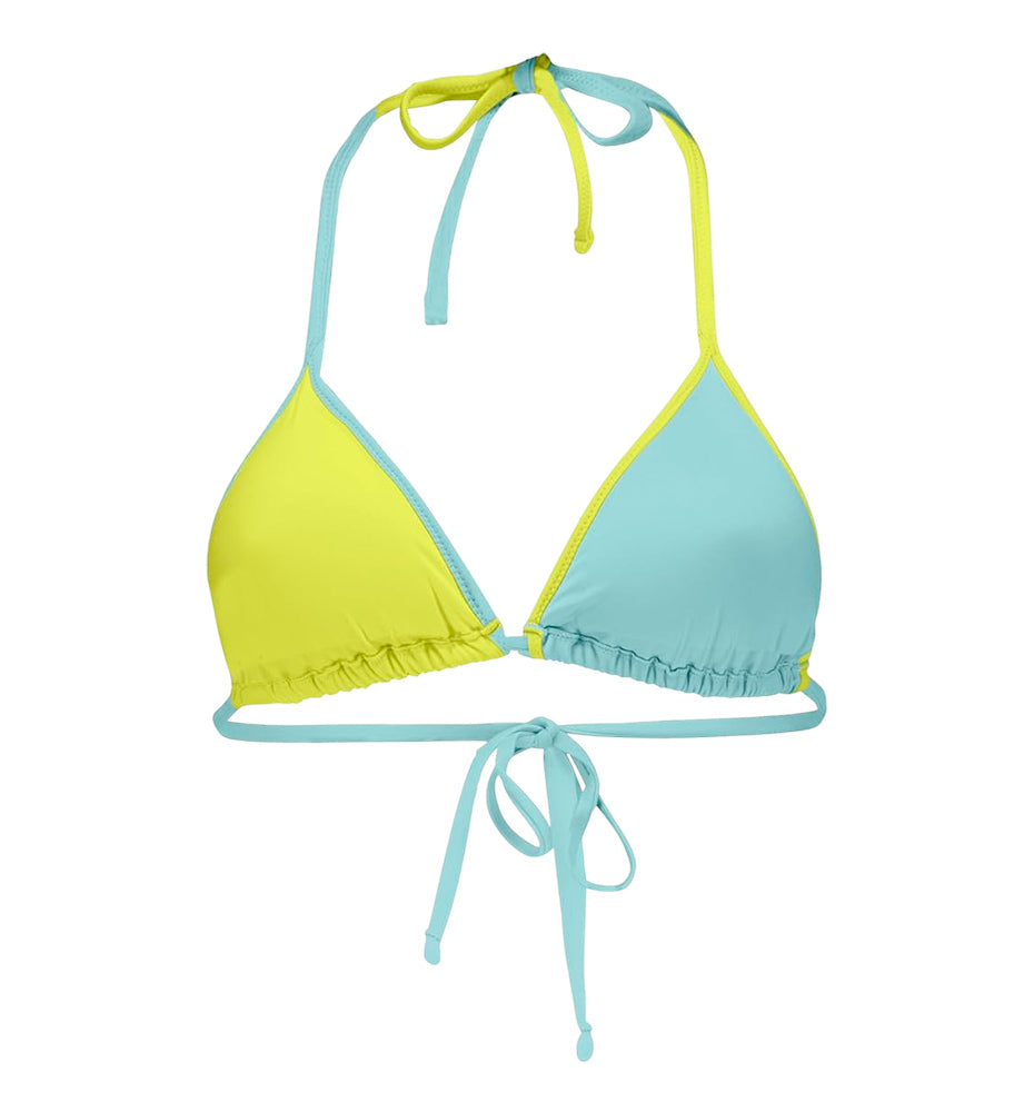 This bikini top features a classic triangle design that combines fashion and function.