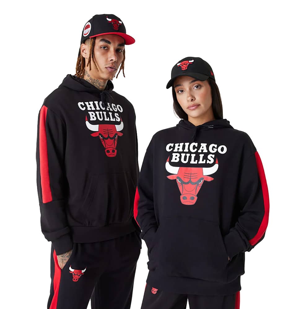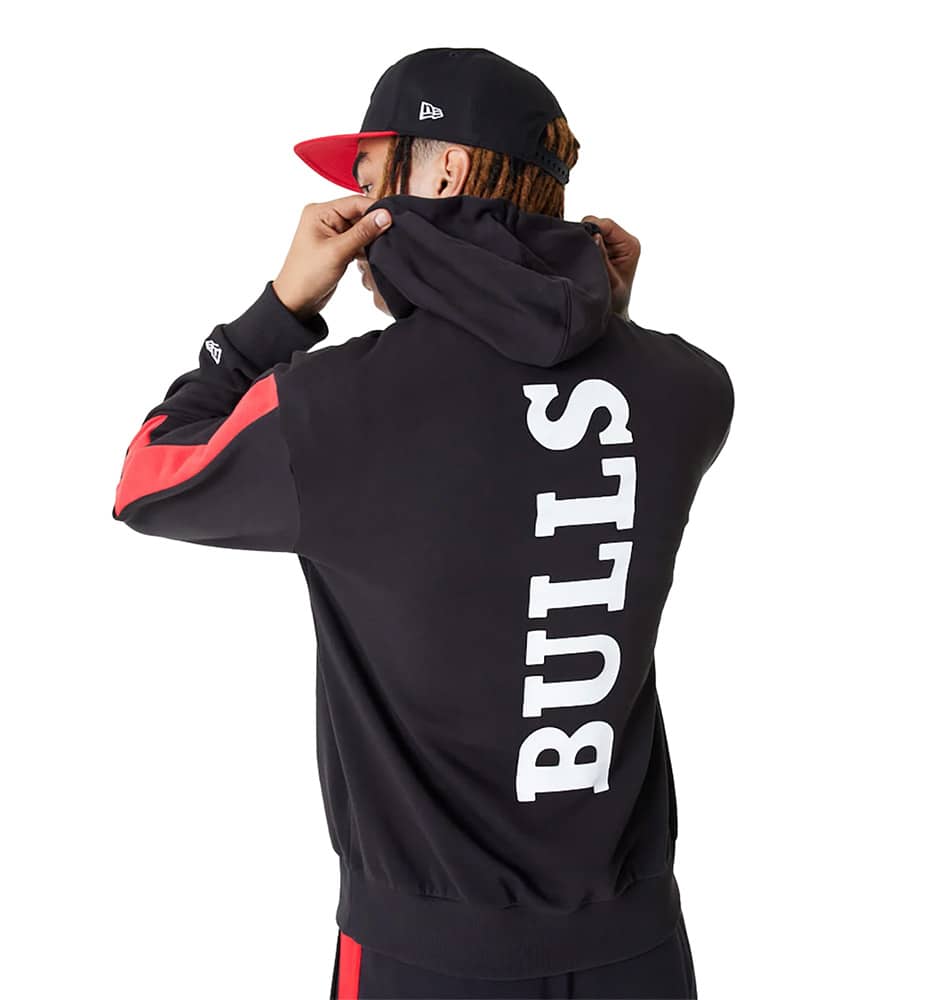 Experience the bold style of the New Era Chicago Bulls NBA Color Block Sweatshirt in Black.