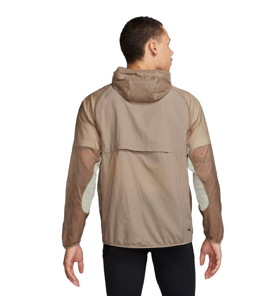 The Nike Trail Aireez Jacket's functional design features trail-ready details like mesh panels for ventilation and zippered pockets for storing essentials.