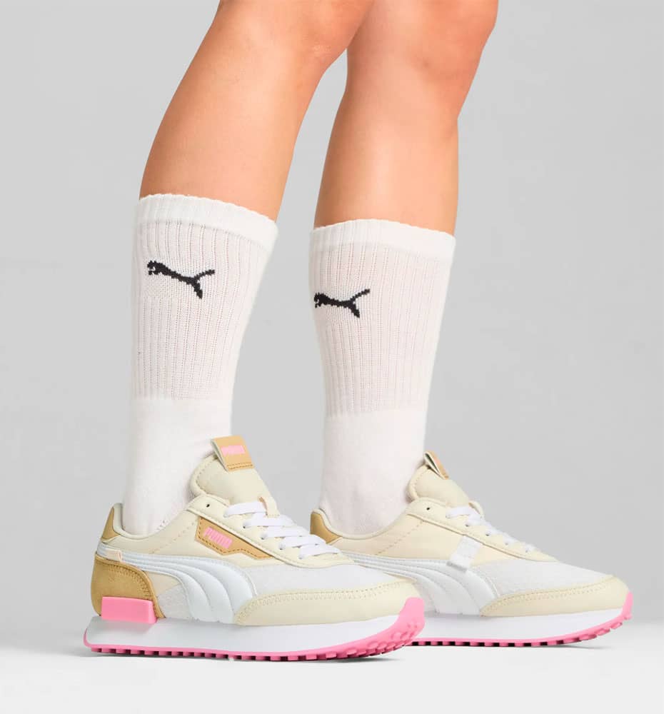 La emblemática franja lateral de PUMA agrega un contraste sutil, mientras que los tonos neutros facilitan la combinación con diferentes looks.