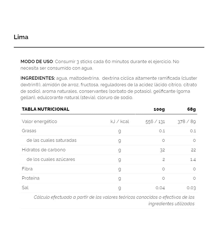 Este gel no interferirá en tus esfuerzos para quemar grasa y ni siquiera necesita agua para consumirlo. Cada barrita contiene 89 kcal y 22 g de hidratos de carbono complejos con sólo 1,4 g de azúcar formulado con sabores naturales que no sólo saben muy bien, sino que también mejoran la absorción.