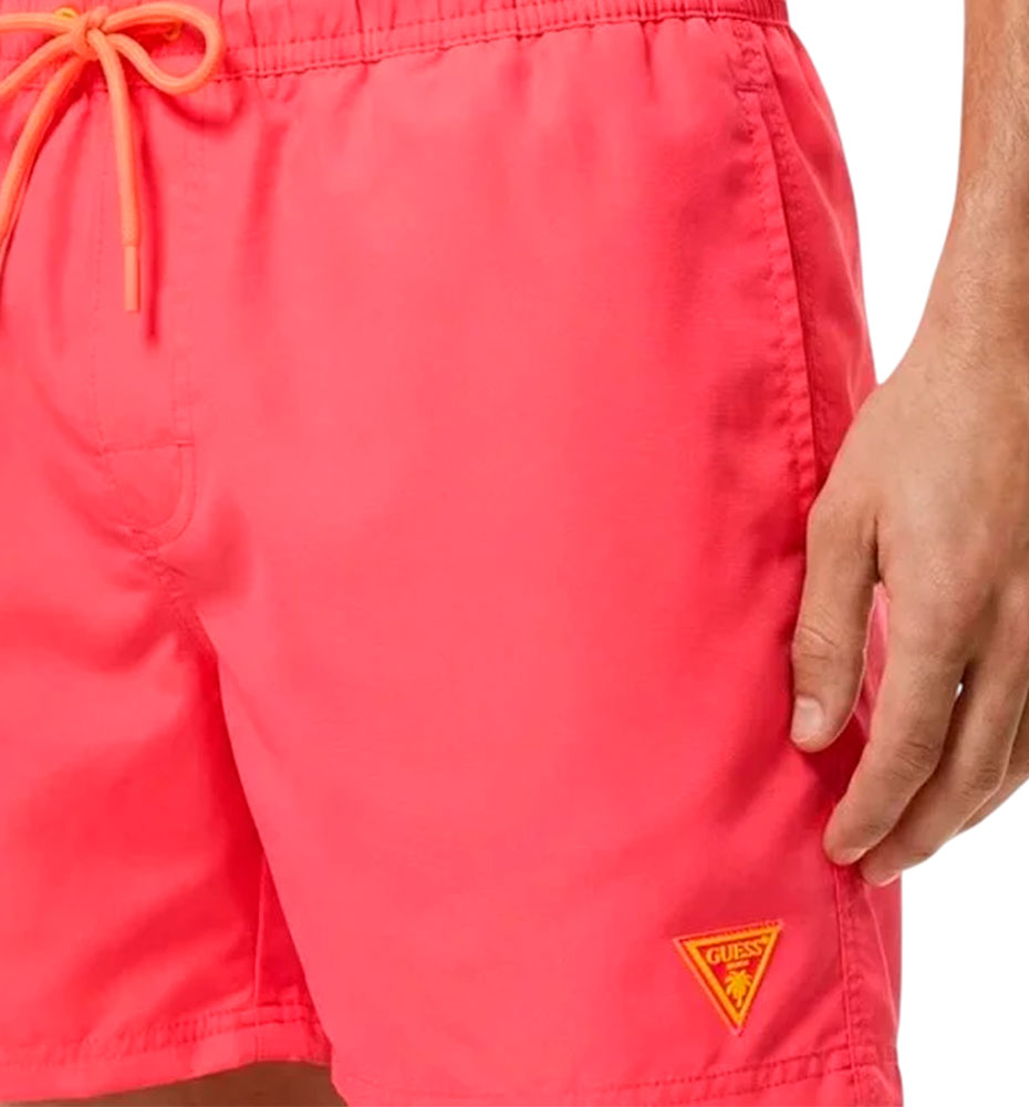 El bañador de baño para hombre GUESS combina estilo moderno y comodidad, con diseño de secado rápido, cintura elástica y logo icónico de la marca, ideal para playa o piscina.